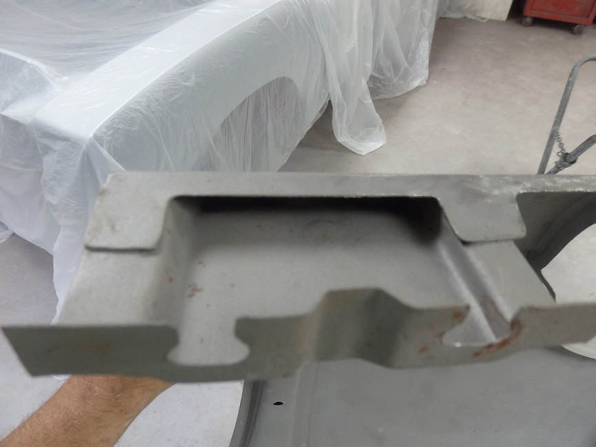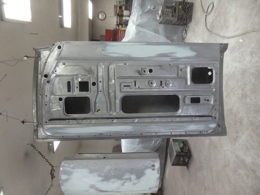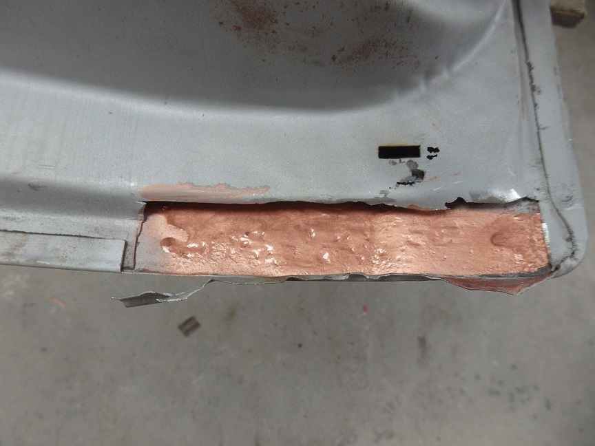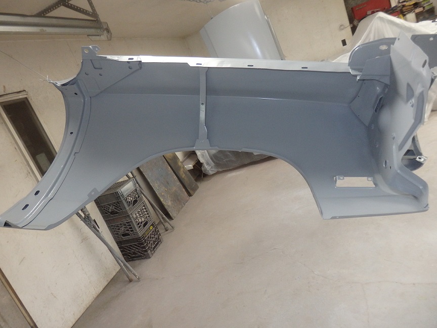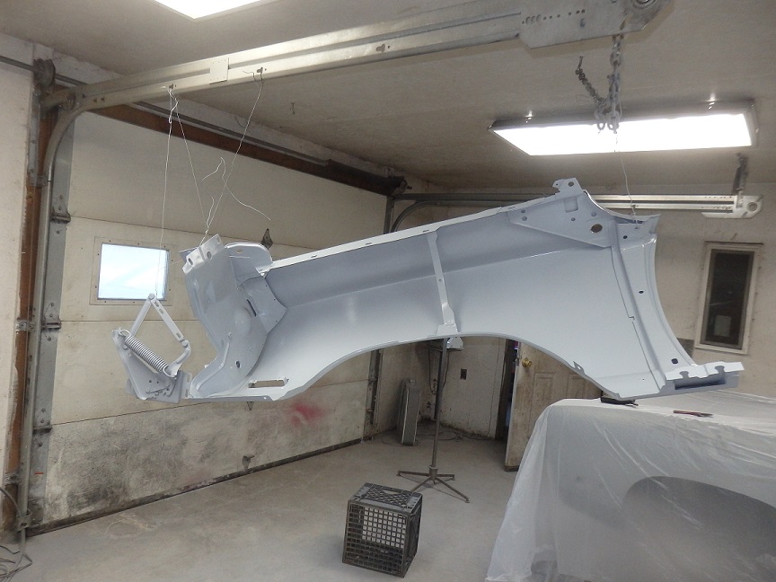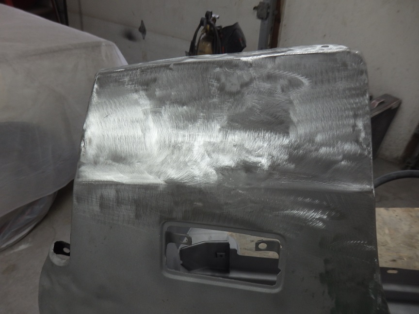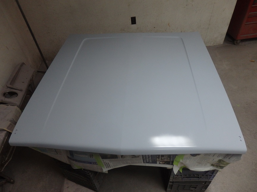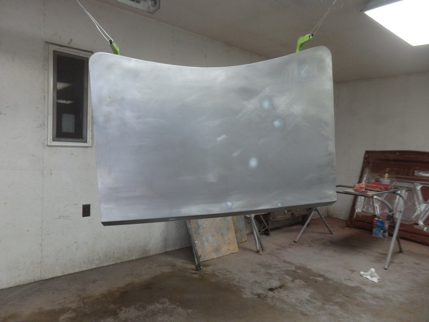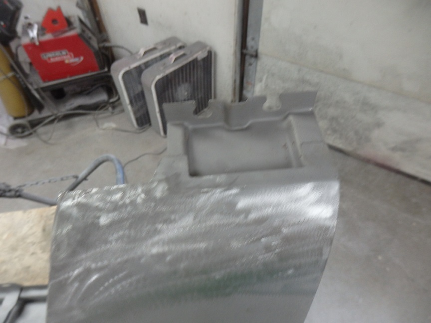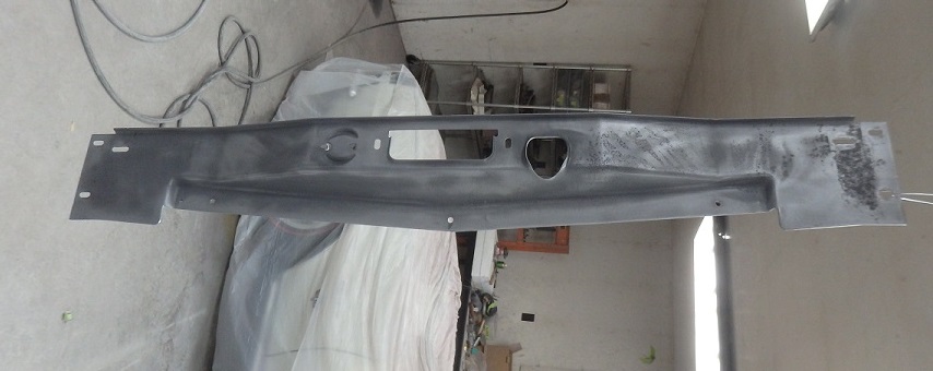 The original upper grill panel did not and repairs. It was sandblasted, sanded and put into epoxy primer.