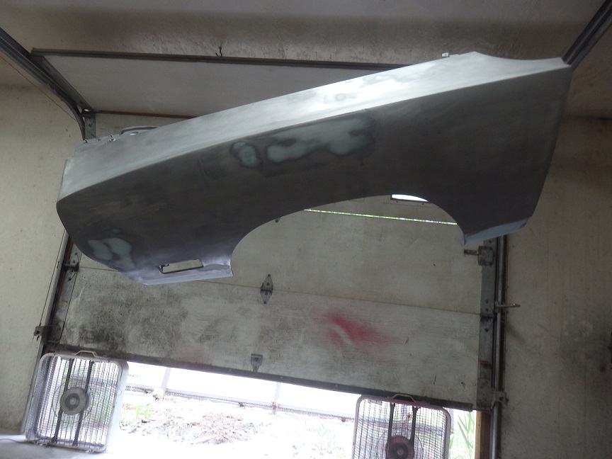 With a little light filler work the left fender was put in epoxy primer rather quickly.