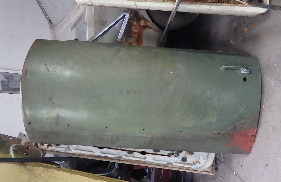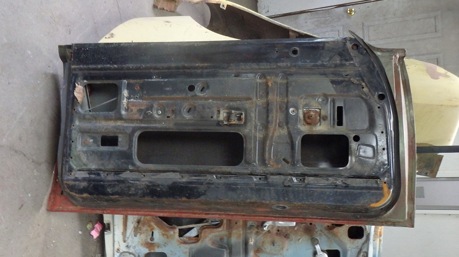 Here are the replacement doors that came with the car. Which is a good thing as the orignal doors could not be saved. The driver's door came frome a GTX with the tell tale lower molding holes. The passangers door came from another Satellite.