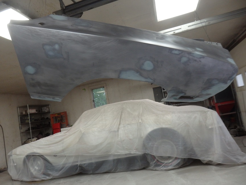 The right fender also went into epoxy primer rather quickly after a little light filler work to fix some small defects.