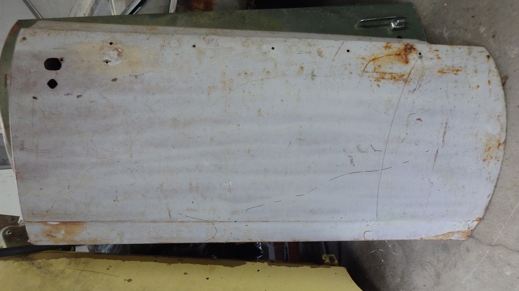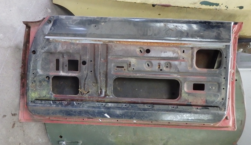 The driver's door had some rust on the inside where the GTX molding hole was. It took me an evening to repair the rust. The piece for the door bumper actually came from the orginal driver's door.