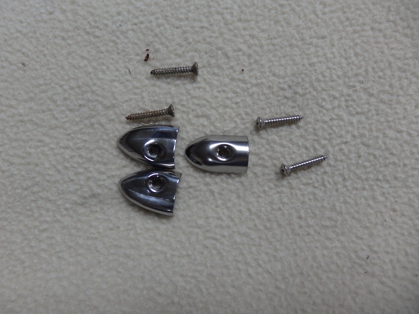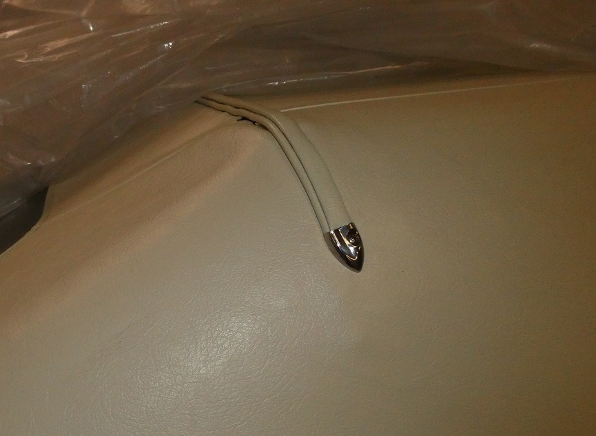 Another thing the convertible top kits gets wrong are the rear tack bead end caps. The screw holes are supposed to be offset and there is supposed to be an indent so that they fit the contour of the bead. The middle picture shows 2 originals