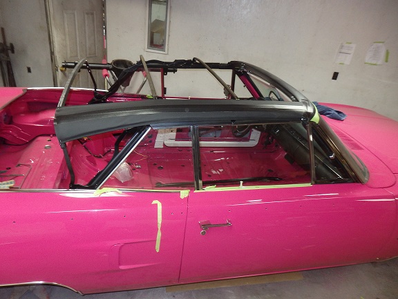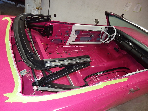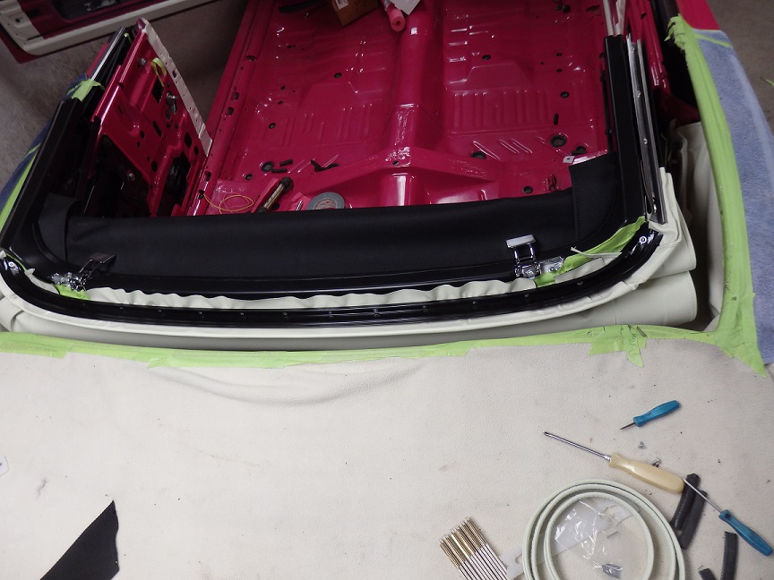 The convertible well mouldings must be installed before the top. The stainless steel pieces I sent out to Brightworks Restoration in Massachusettes for polishing. The chrome pieces were replate by Paul's Chrome in PA.