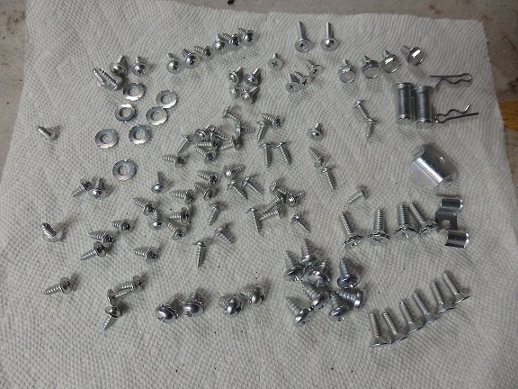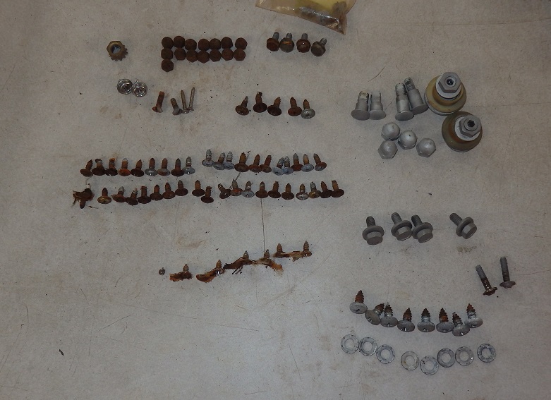 Of course nothing can go together until the hardware is restored. Here is most of the top frame hardware. Except for the acorn nuts, all of it was originally zinc plated. You can't buy new kits with the correct hardware,