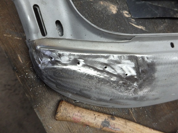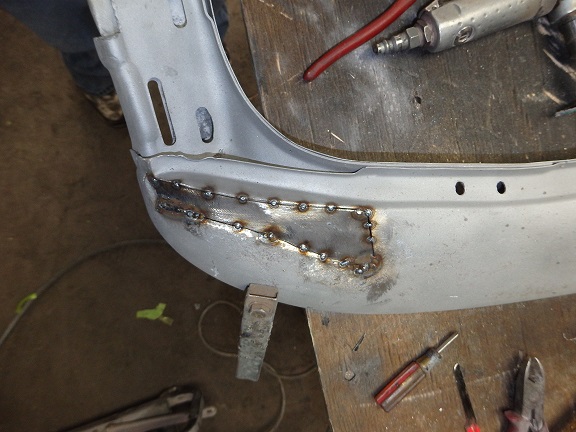 Then the new piece is trimmed roughly 1/16" smaller then the opening and before it is welded in. Once the welding is completed, the welds are ground down and the holes for the top pads are drilled.