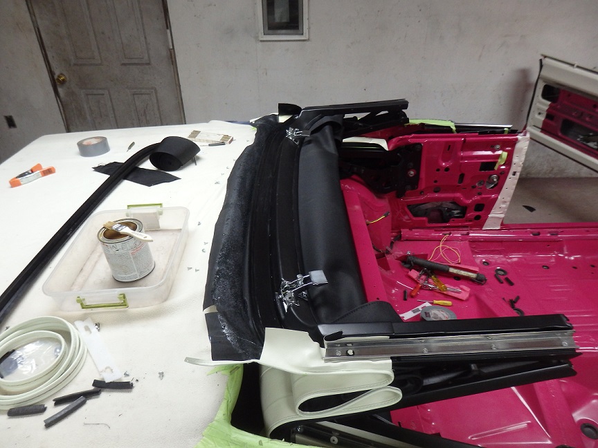 My intent here is to give an overview of what I did to put the new convertible top on. If you are considering doing this yourself, you may want to consider having a professional do it, as this car was quite
