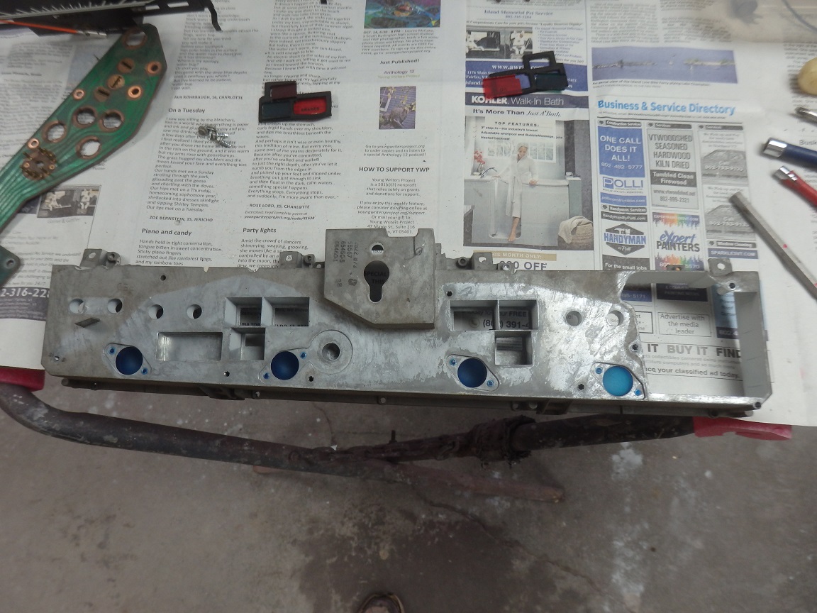 The original lower dash plastic panel was damged by someone who intentionally broke the switches out of it. I bought a used one off ebay that turned out to be a green one painted black with way too much paint to boot. So I stripped