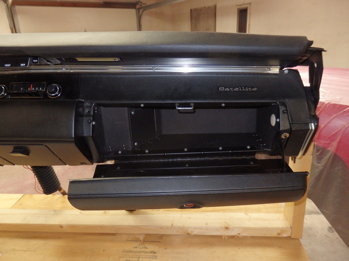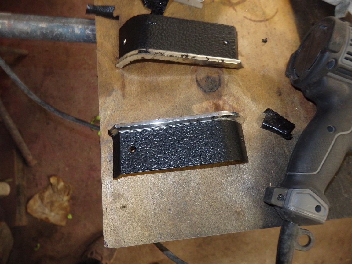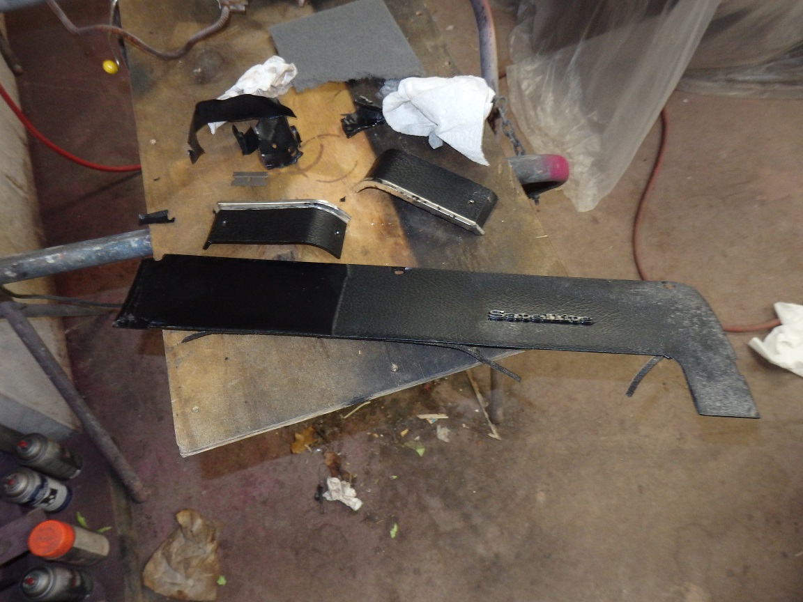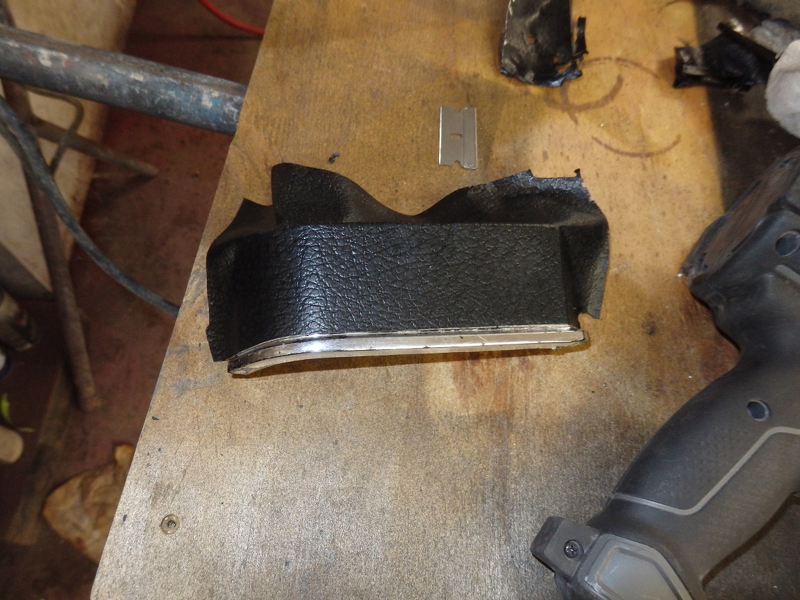 a broken Satellite upper dash piece, removed a good section of the textured vinyl and applied it to an end piece.