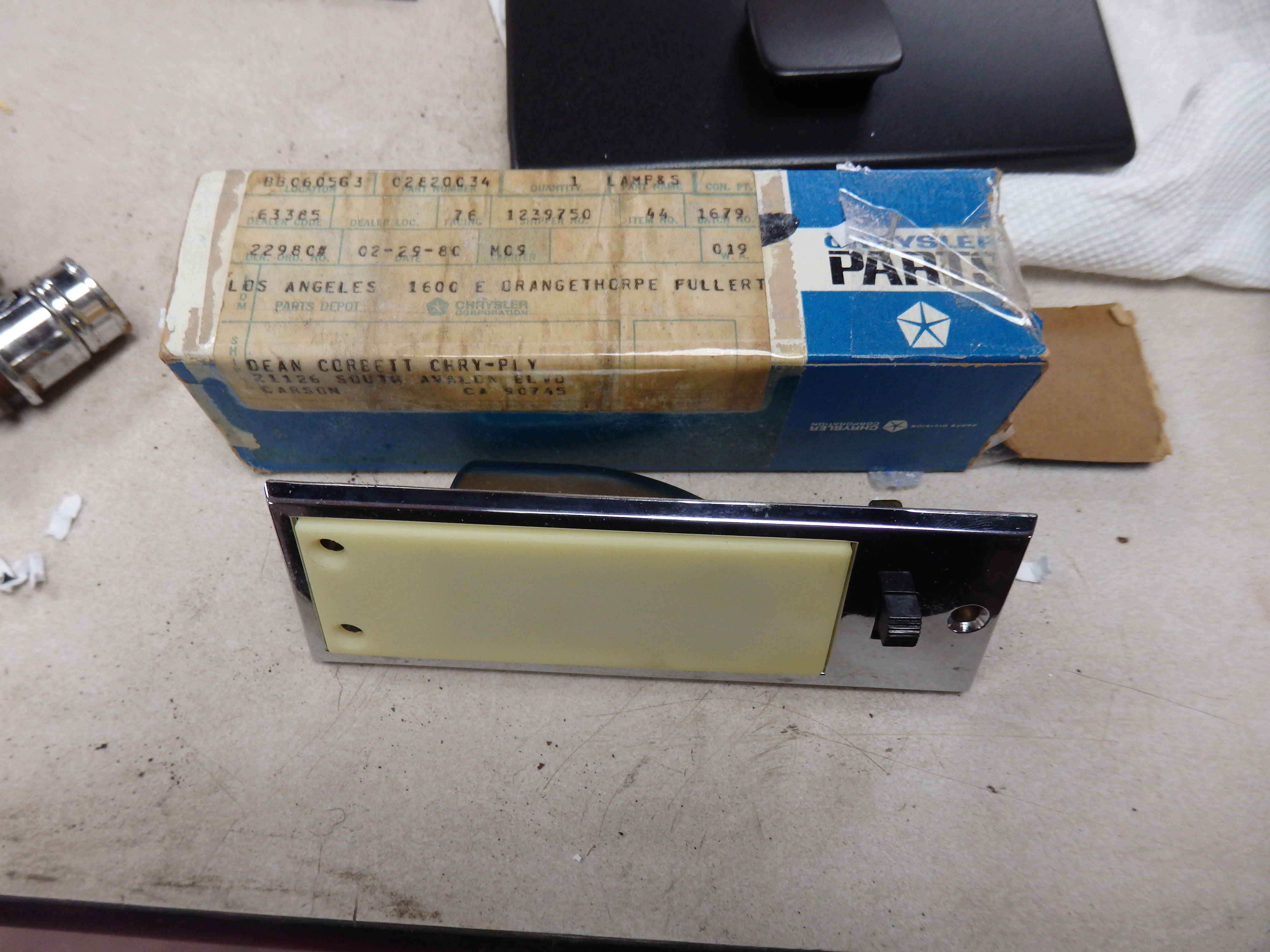 I was able to acquire an NOS radio bezel and NOS map light. Repo map light lenses are a lot whiter than this NOS one.