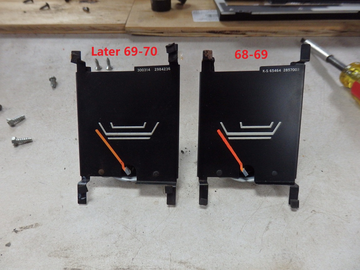 So after I had the dash all back together I was suprised to learn through the David Wise books that I had the wrong temperature gauge installed. Chrysler changed the gauges in late 1969. The difference is in the top line.