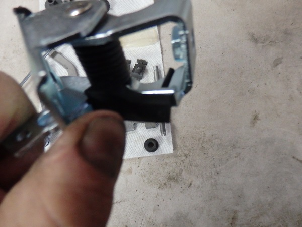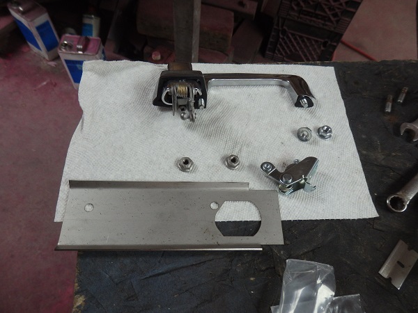 Here is the door hardware all restored and ready to install. Not clearly shown in the second picture is the rubber bumper that needs to be installed on the interior door handle mechanism.
