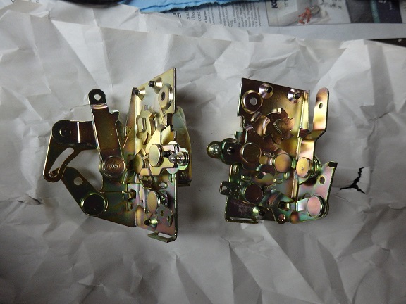The make really high quality repo door handles, so I didn't bother replating my originals. The problem with the repos is that the brackets for the button (bottom right) that comes with it are not very good. Luckily the originals cleaned up nice and they fit the repo handles.