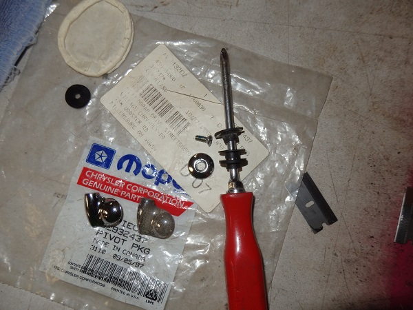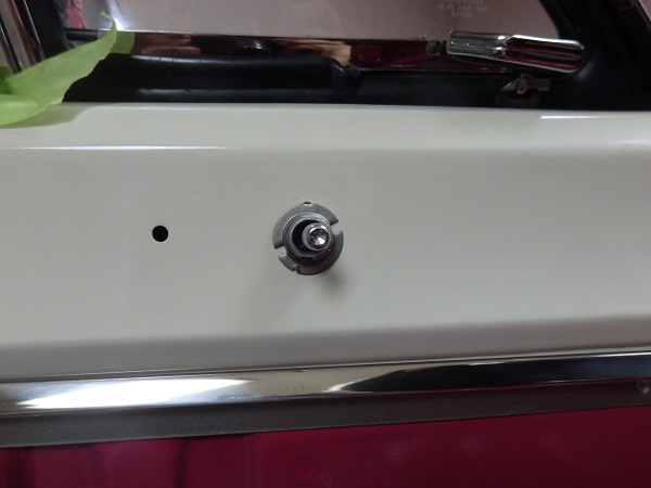 Convertible vent windows have chrome pivot pins rivetted to the L-shaped bracket. I had to drill out the rivets so that I could send them out to get rechromed. Since I had the correct tool I was able to rivet them back on with the correct solid rivets.