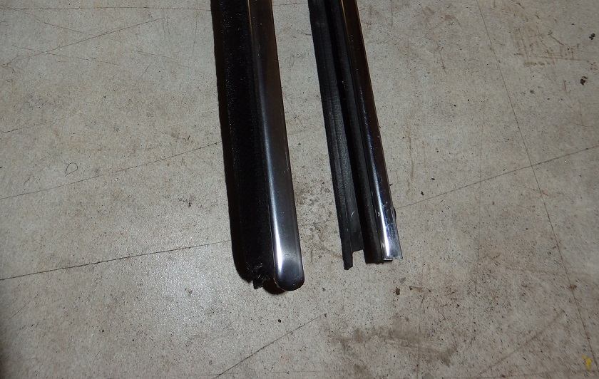 The vertical window channel is stainless steel (hardtops are only SS on the top half). The L-shaped (triangular shaped ?) weather seal retainers are spot welded to the SS channels at the factory. I ended up breaking these welds free to get my trim polished and