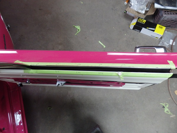 To install the window sweeps you first have to have the windows installed and their bottom stops loosened so that you can crank the windows down below the level of the sweeps. I also tape everything to protect the paint during this process.