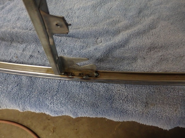 The bottom of the SS channels also have these locating brackets spot welded to them. They are often found broken off on convertibles and hardtops. And of course, convertibles are different then hardtops. I put a nice strong weld on them to keep thme in place.