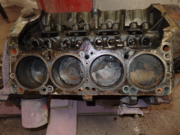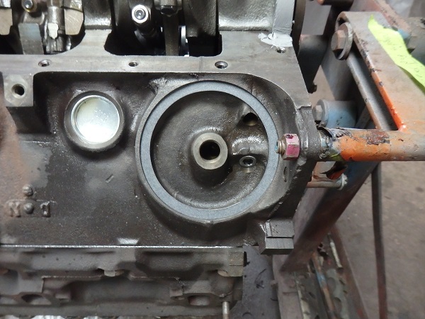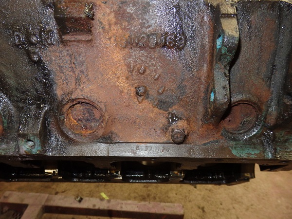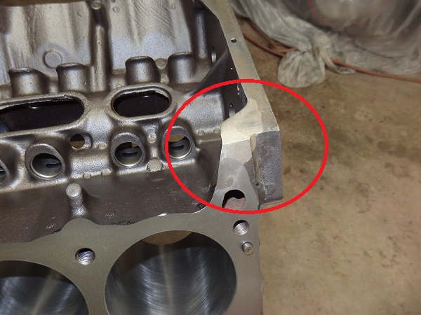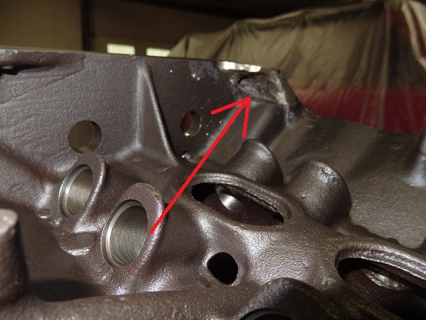 how true that is. It looks like someone broke the corner of the block prying the head off and had to fix it. Either way, at least the block is original thanks to a siccesful repair.