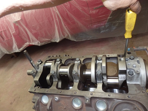 When I put the new crank in, the first hing I did was check the endplay (the side to side slop). It was 0.006" which is jsut about perfect. Note: Too little endplay will result in binding when the engine warms up.