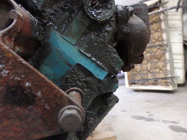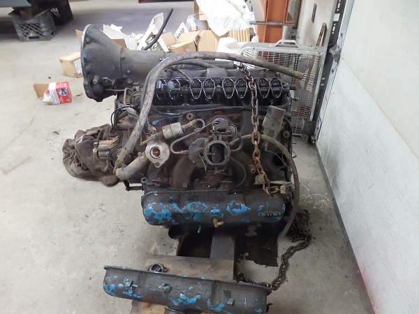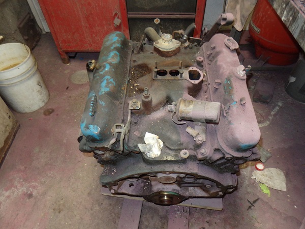 Here's what the engine looked like when I brought it home. It was already removed from the car and separated from the transmission when I bought the car. A quick wiping down with some thinner revealed that the VIN stamping on the block matched