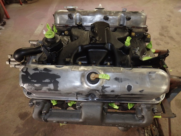 I primed the engine with 2 coats of PPG DP90LF epoxy primer.You may have noticed that I primed the exhaust manifolds. This is an experiment. The factory originally