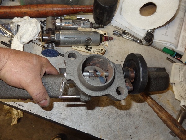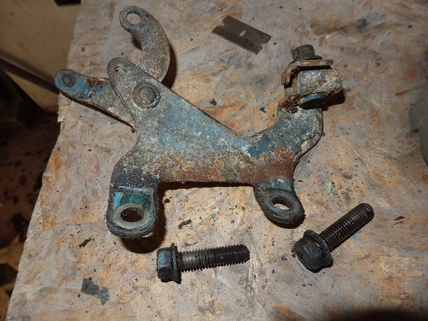 Taredown always begins with taking lots of pictures of everything in order to record what goes where and what gets painted engine color, such as this throttle bracket.