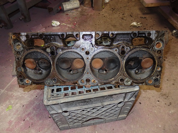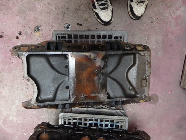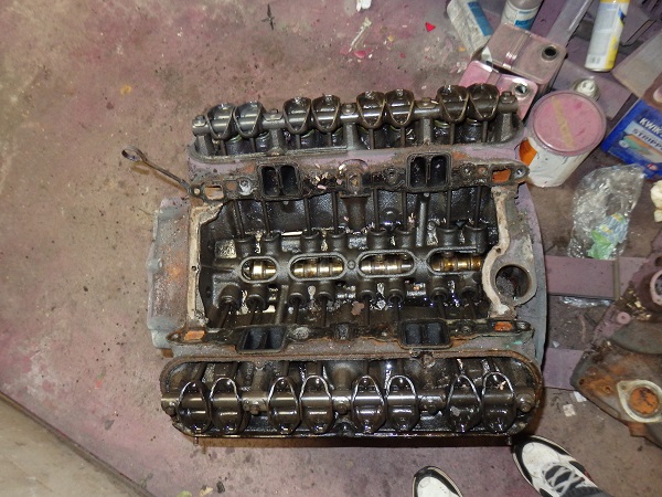 The first things to come off were the intake and then the heads. There were no signs of sludge anywhere. The underside of the intake was suprisingly clean for a car that always ran on leaded gas. Had this engine been