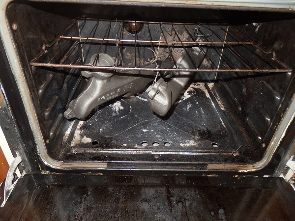 The exhaust manifolds were sandblasted painted with Seymour High Heat Castblast paint and were baked in the oven for 2 hours (when my wife wasn't home)....