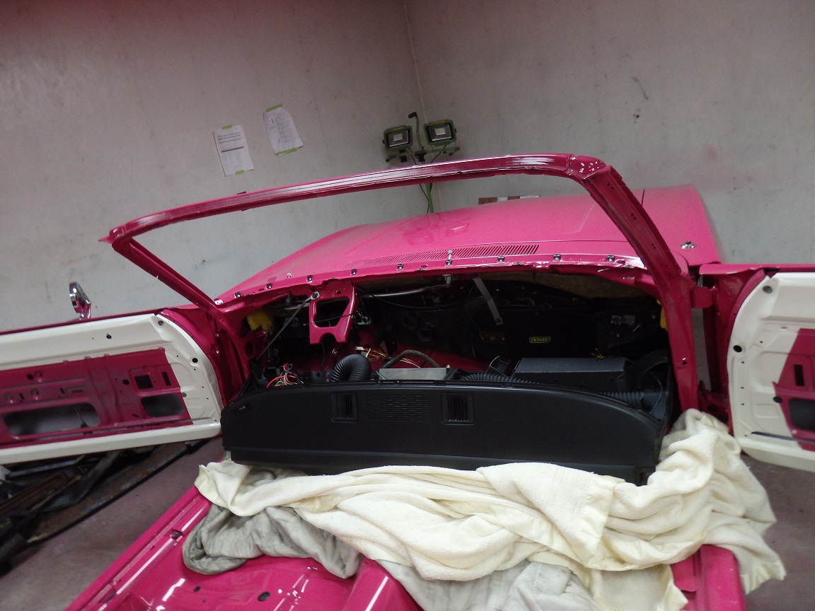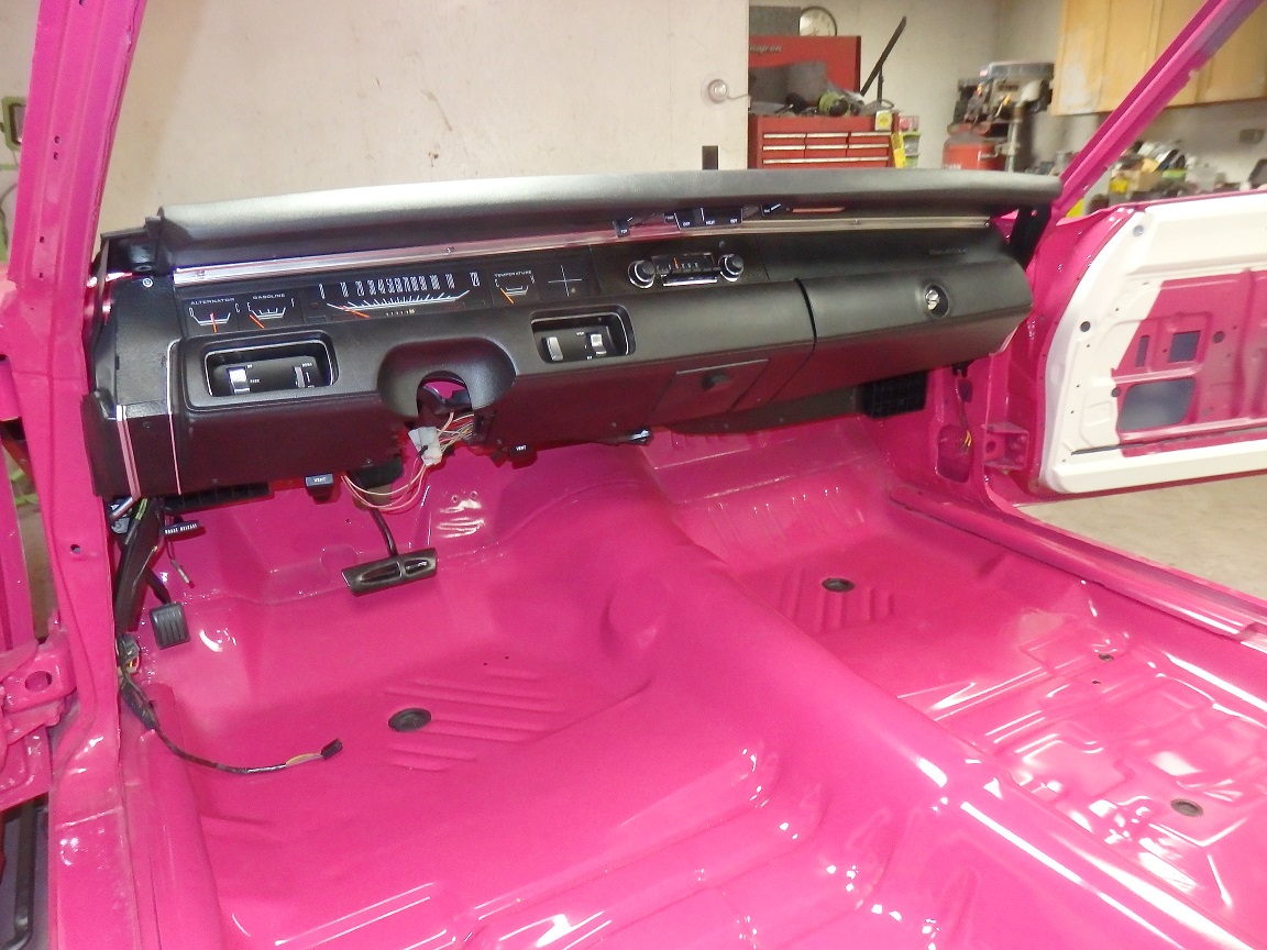 Installing the dash is super easy. You screw in the lower dash bolts a little bit and you hook the bottom of the dash over them (between A-pillar and brace on the LH side).