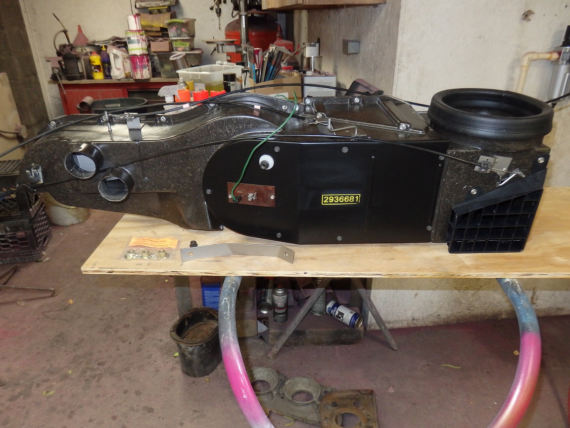 Here's a bunch of shots showing the fully restored heater box and cables.
