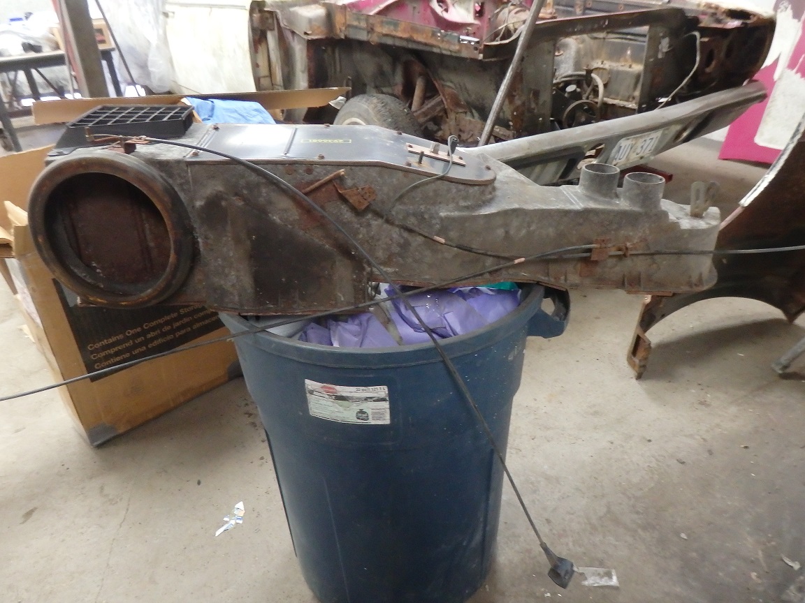 The fiberglass on the original heater box was a crumbly mess with no hopes of restoring it. I did find an excellent used one from a 1969, but it cost me $500 delivered. At least it was crated really well.....