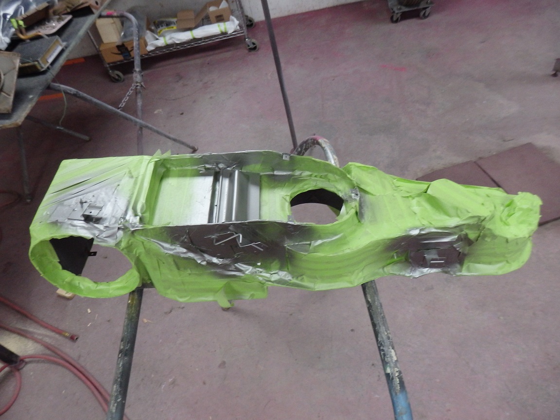 fiberglass with tape, beadblasting the metal parts and then painting the metal with Seymours Stainless Steel paint.