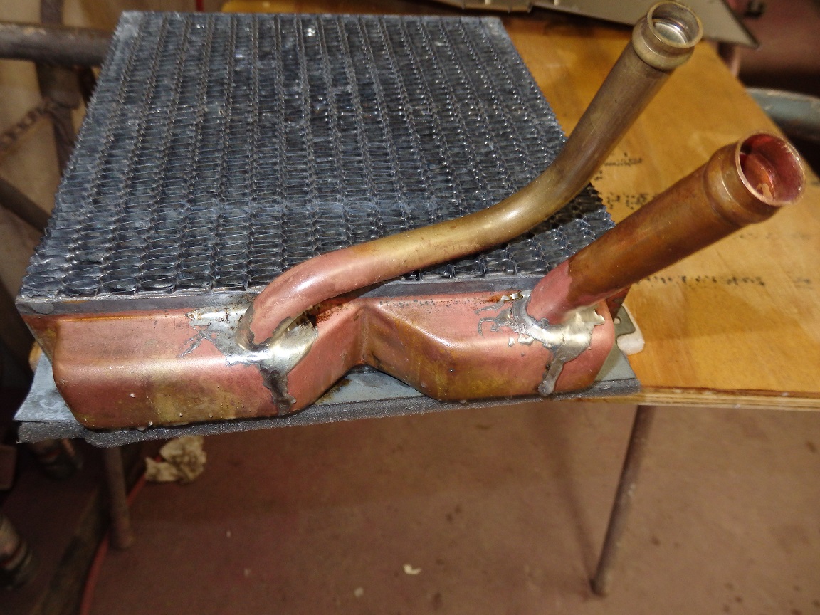 What makes this heater box different than the 68/69 version is that one of the heater core inlets are larger in diameter than the other. To improve heating I guess. I bought a repo heater core, but the tubes were not
