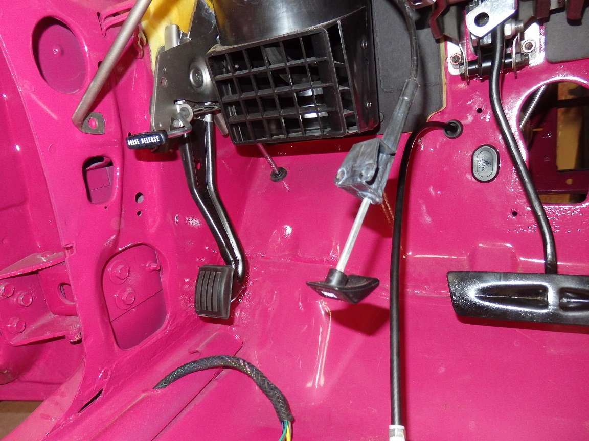 I mentioned previously I had to replace the rusty original parking brake assembly. The body of it was beadblasted and painted with Seymour Stainless Steel paint along with the pedal arm itself being painted black.