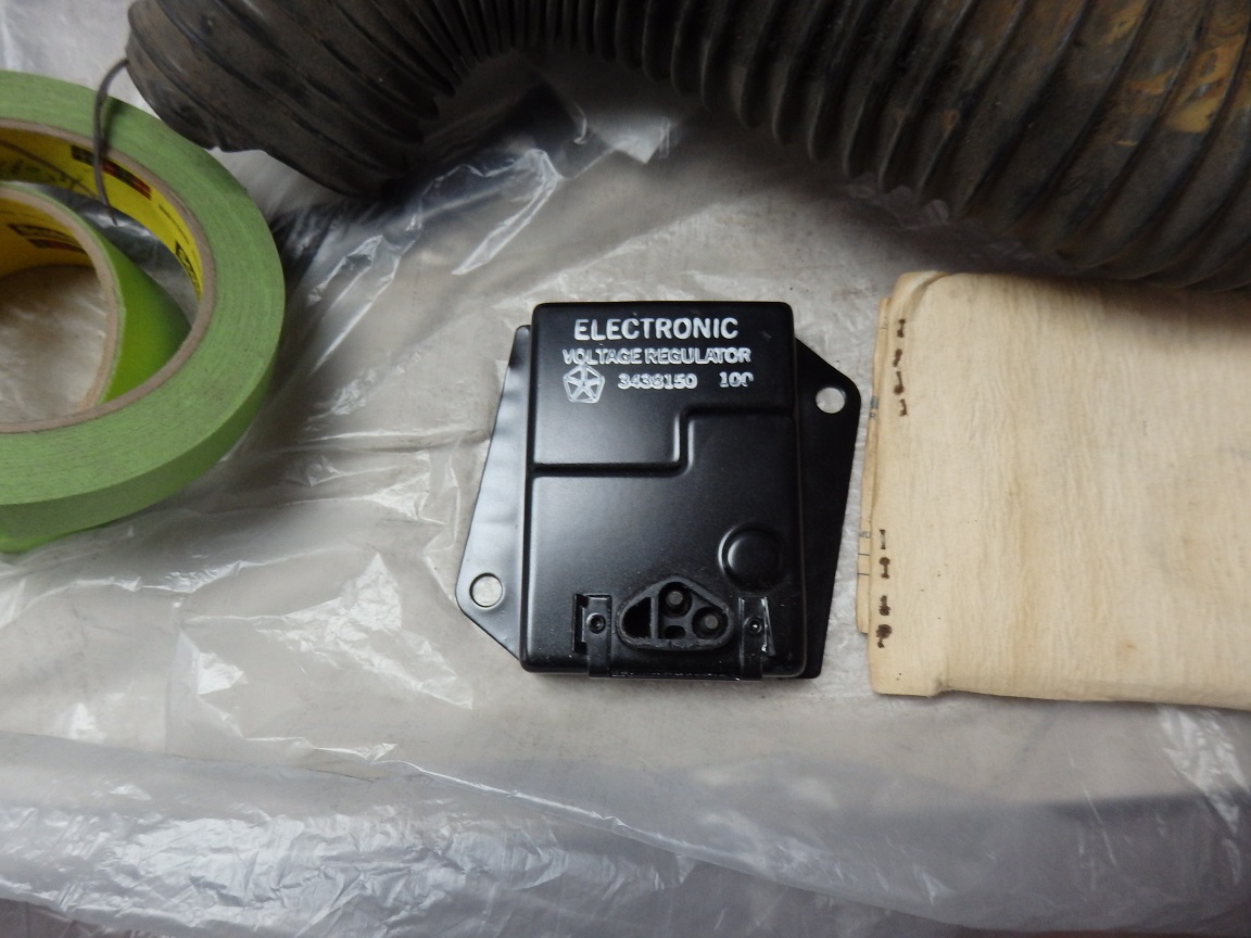 The voltage regulator is a new origanal that ECS Automotive repainted and stamped with the correct part number and date code (10th week of 1970). You can easily spot a correct one as they have a raised step area and