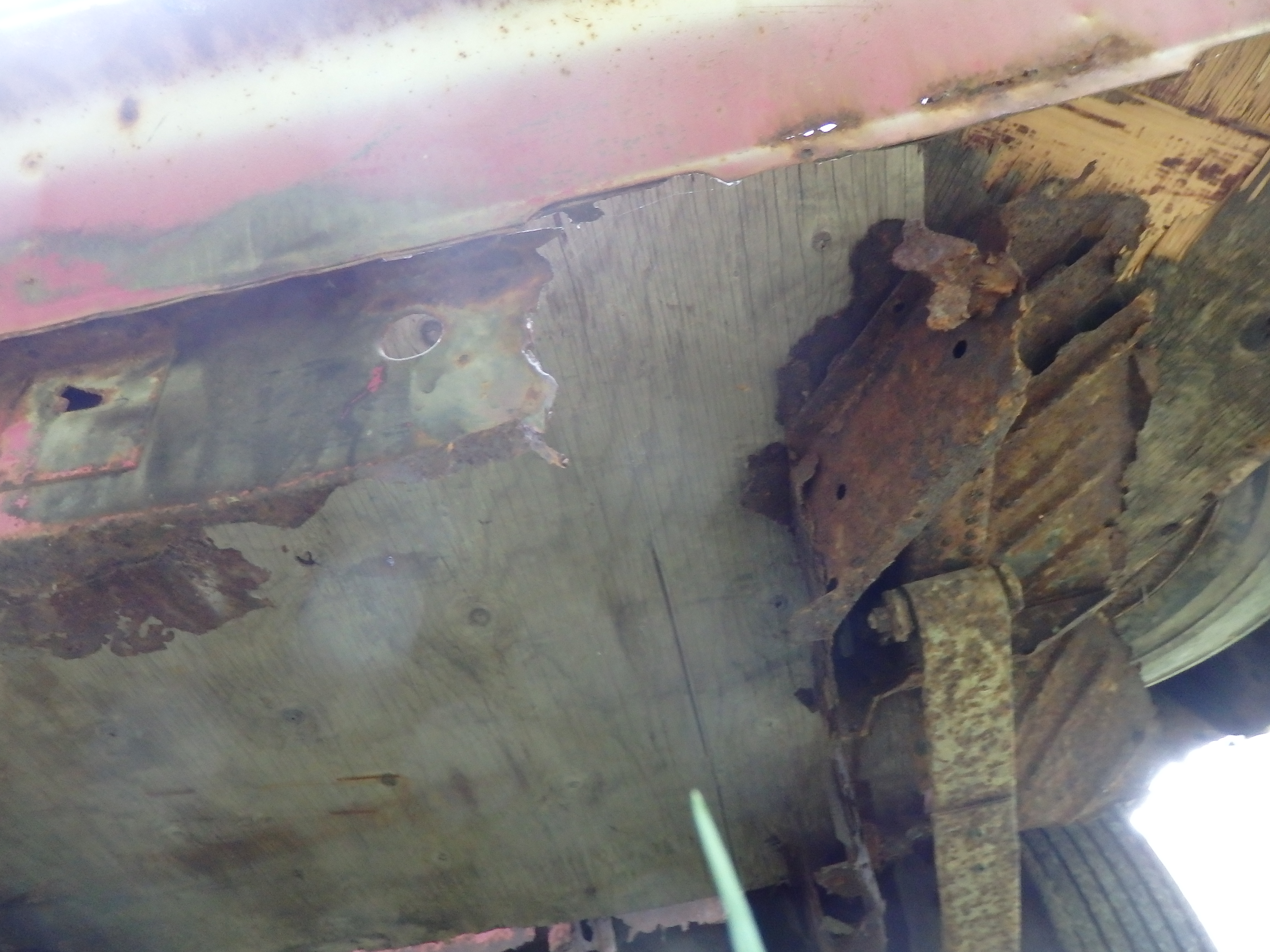 The floors possibly could been patched, but the frame rails and rocker panels were so bad that the floors would have to come out. The underside looked pretty bad, so in order to perform a quality restoration that would last for many