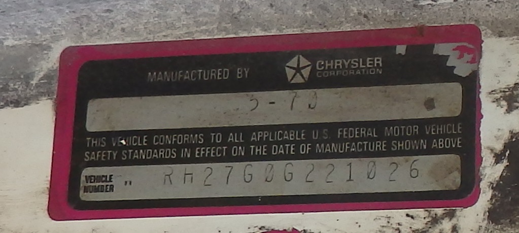 One of the first things I checked on the car was originality. What I am describing here is applicable to any Mopar you might want to purchase. The series of pictures below shows that the car is original. The dash VIN Tag (very bad idea by Chrysler to rivet it to a bolt on dash by the way)