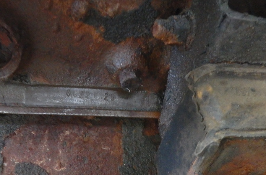 I thought that this was worth mentioning for your authentication purposes. The picture below is of the stamping on the left front side of the engine. Some may mistaken the stamping for the VIN, but it really pertians to the engine build information. | ||