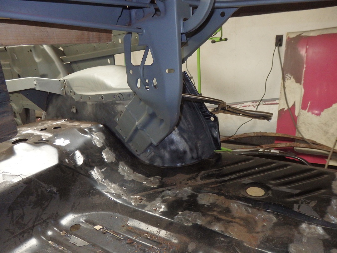 And here it is all in primer. Note: the lower trunk dropoff was only clamped to the trunk floor since it needed to be fitted to the quarter panel first.