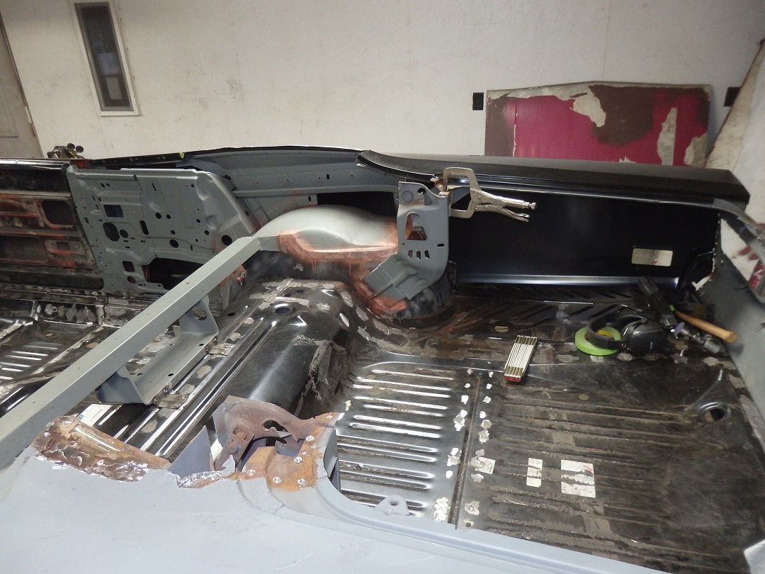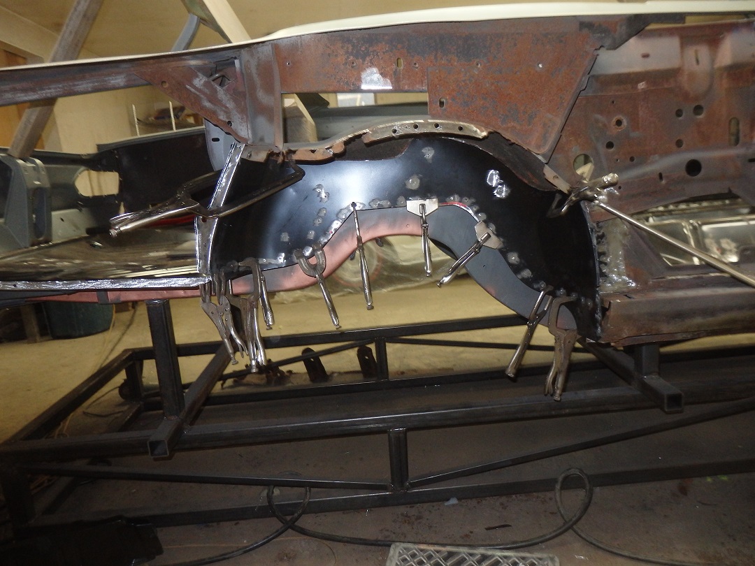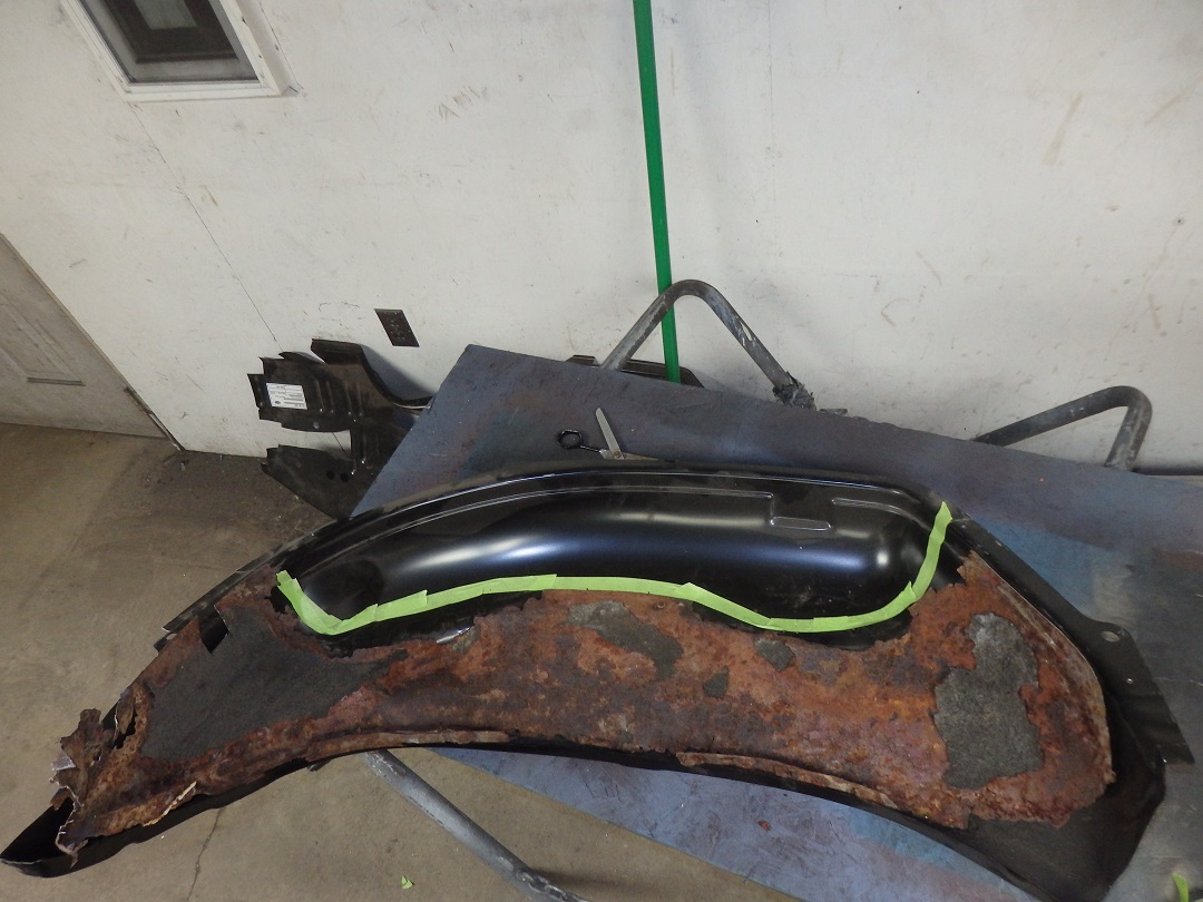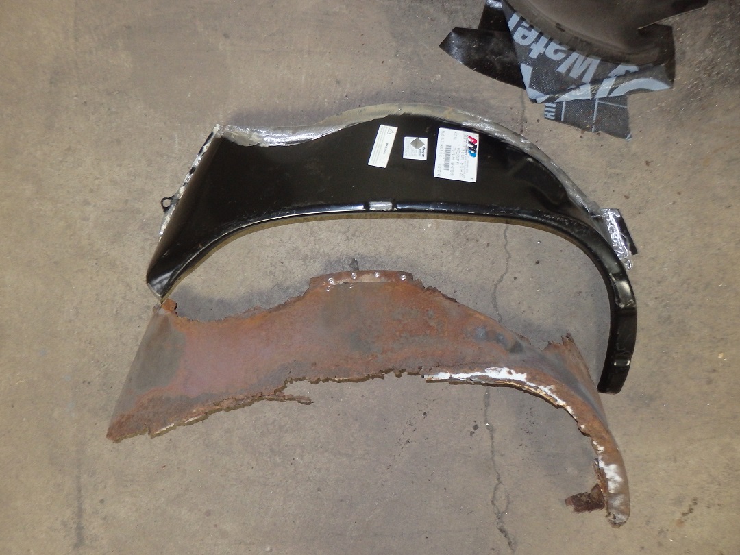 Here the wheelhouse cap is repaired and the inner fenders are welded in.