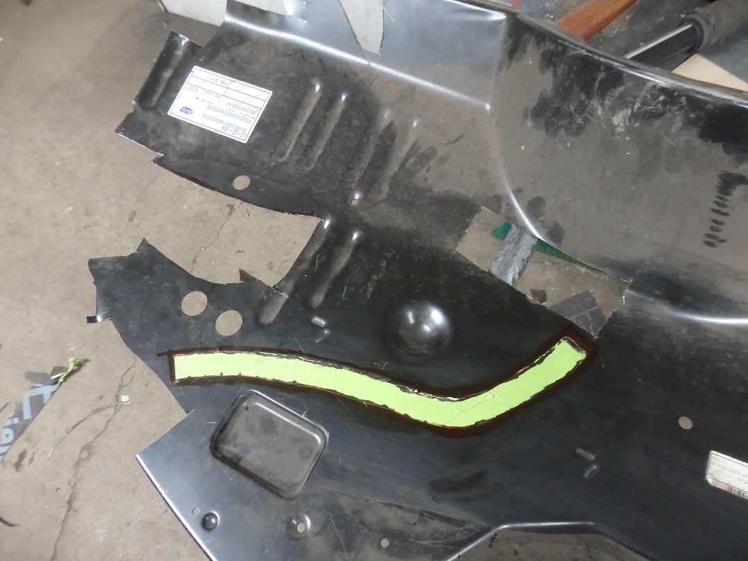 The new inner wheelhouses were trimmed and fitted to the car in preparation for fixing the flange around the wheelhouse cap.