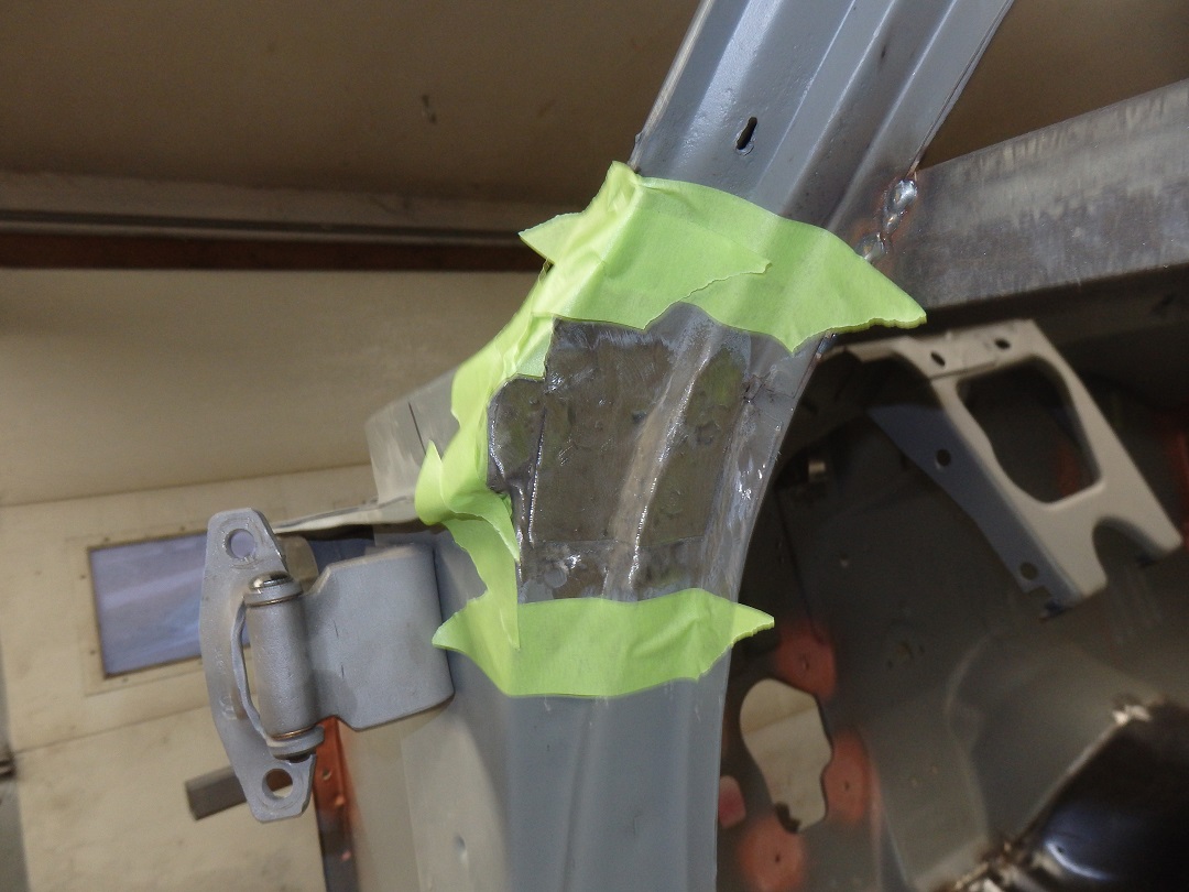 The windshield pillar where it meets the top of the A-pillar likes to rust out as well. Again this was repaired one layer at a time.