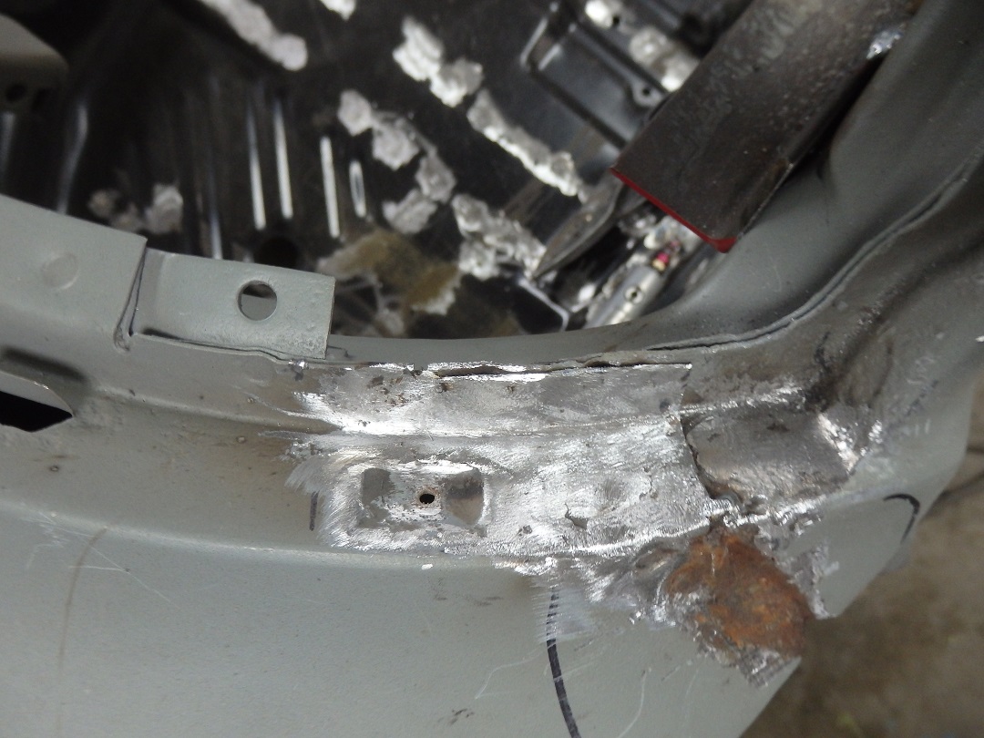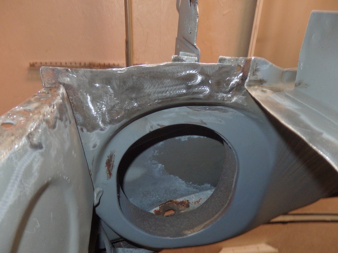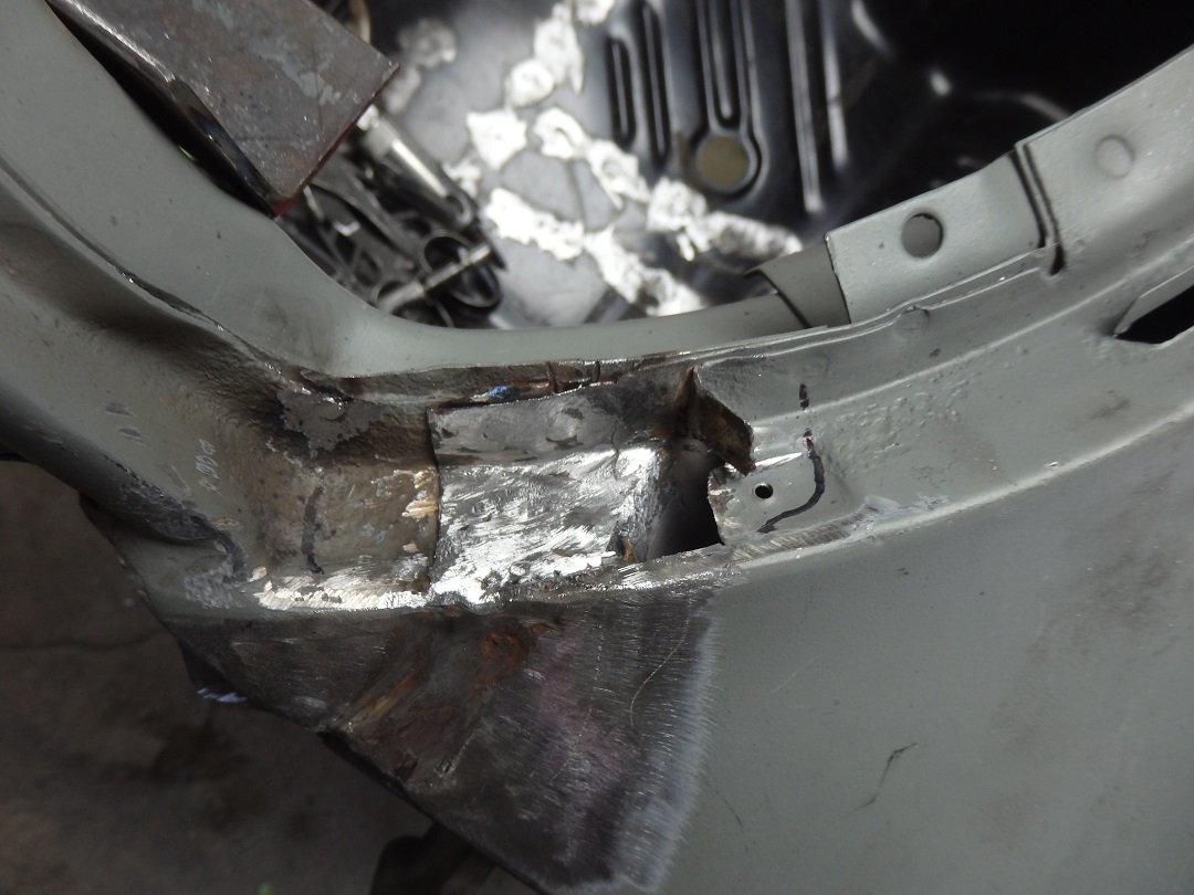 There was a penalty to pay. The small hole allowed water to run down the face of the firewall, so I had to replace the end section. I bought repo firewall of ebay. The repos aren't really correct for this car, so I was lucky I