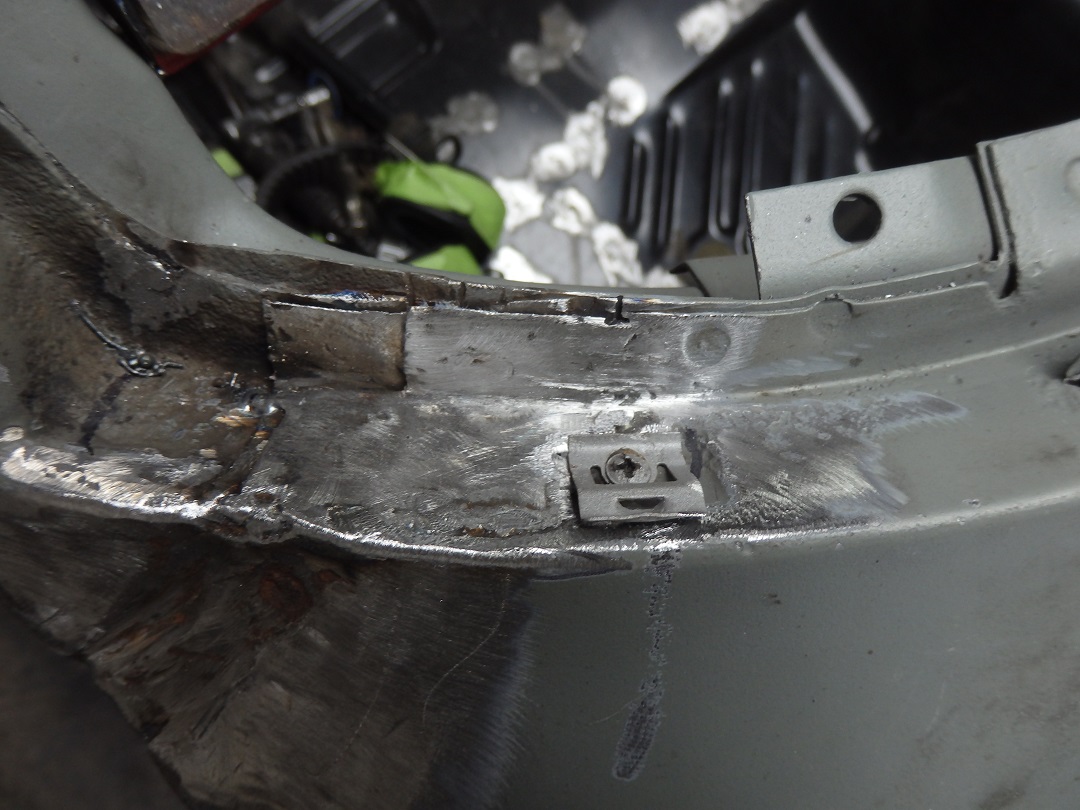 This area contains several layers of metal. I repaired it one layer at a time. The final touch was to make sure the window molding clip still fit in its pocket and the molding fit properly.