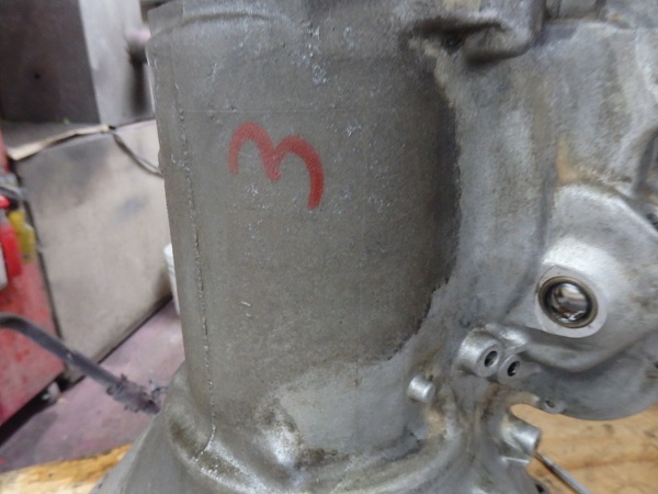 When I cleaned the transmission case and tailhousing I found a few factory numbers. A 3 (freshened with a marker on the 2nd picture) and a 1 (stamped backwords). The transmission code on the broadcast sheet for this car was D31, so I