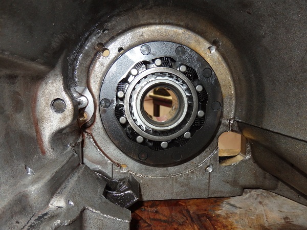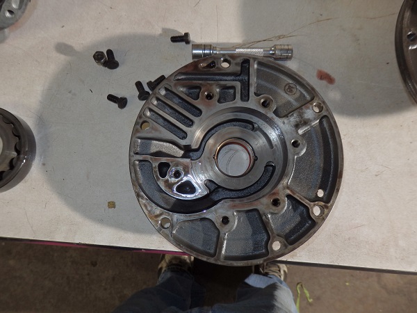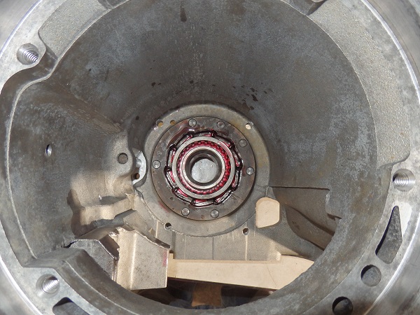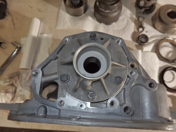 The support/flange, just bolts in place. It's a tight fit so a rubber mallet and a block of wood may be neccessary to get it out. Avoid damaging the bores or it will not fit back together very easily.
