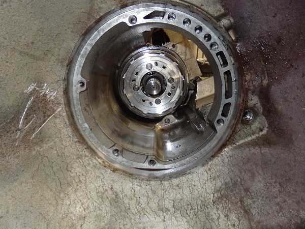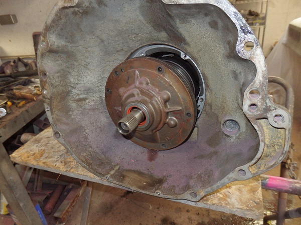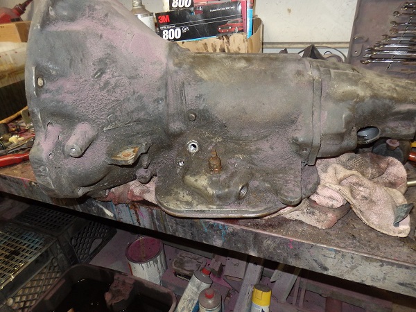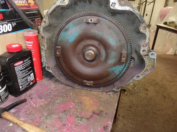 Here's the original A904 transmission when I started. The overspray on the torque converted was applied by the factory, so that is a pretty good indication that the