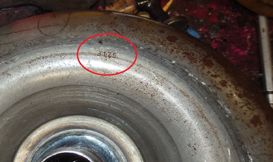 torque converter was installed when the engine was painted. The number 3175 stamped on the torque coverter indicates the date of manufacture using the Chrylser 10,000 calender of