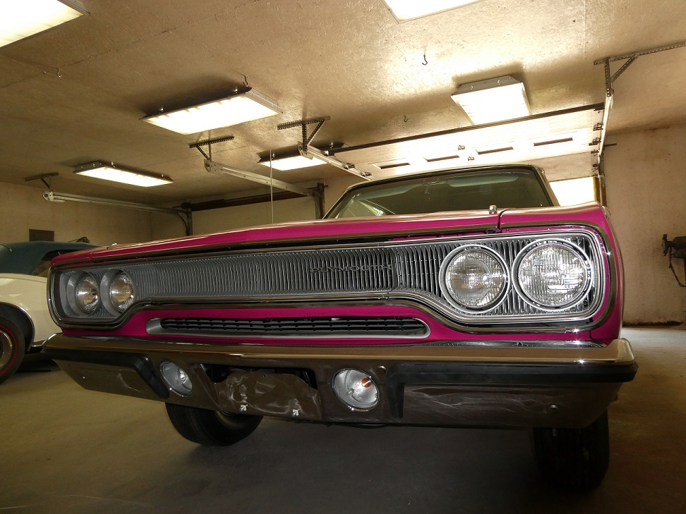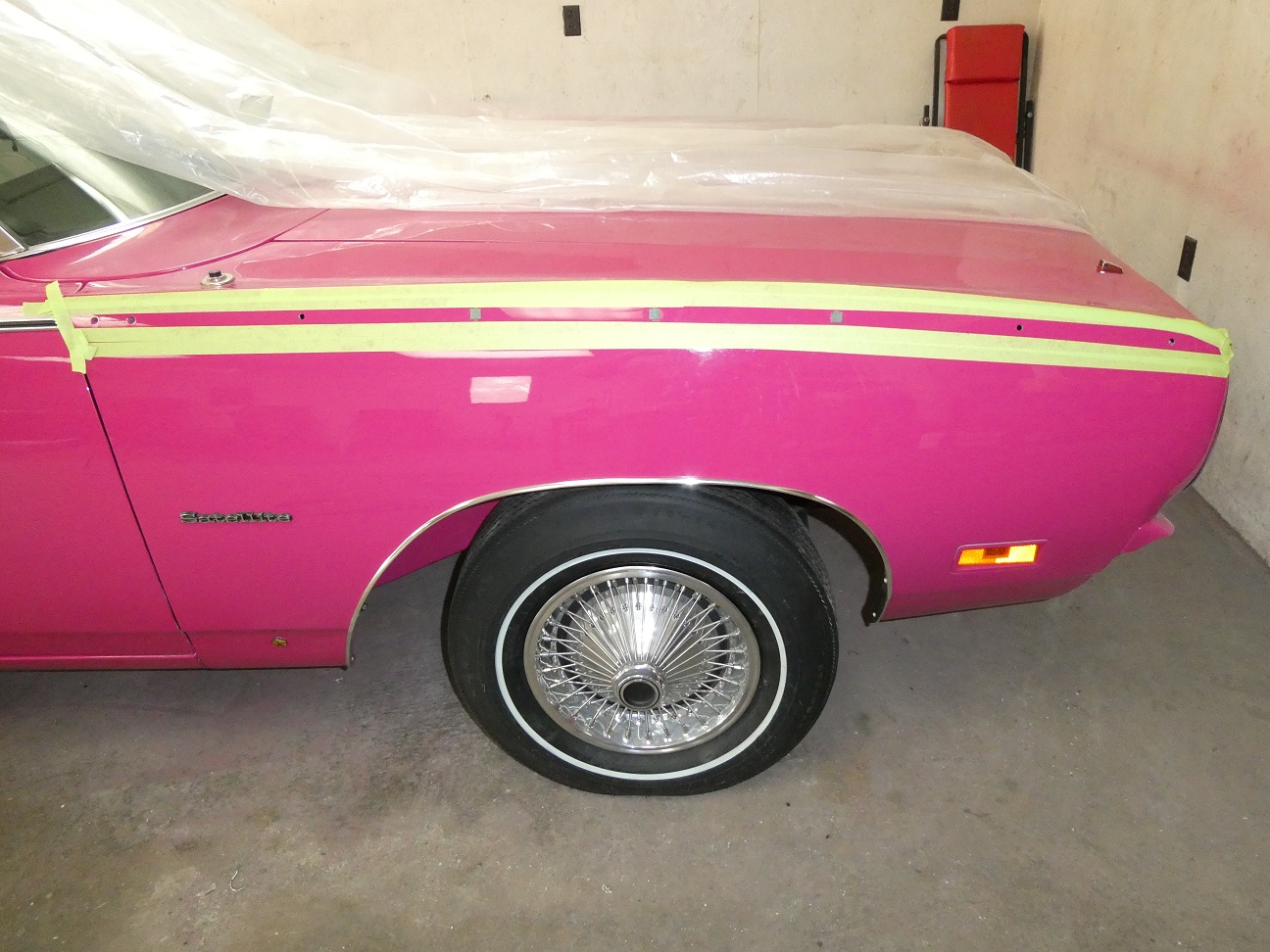 Next onto the side mouldings. Satellites have mouldings that go along the length of the car near the top of the fenders. People who clone Road Runners from Satellites, remove these mouldings and fill in the holes. The mouldings are anodized