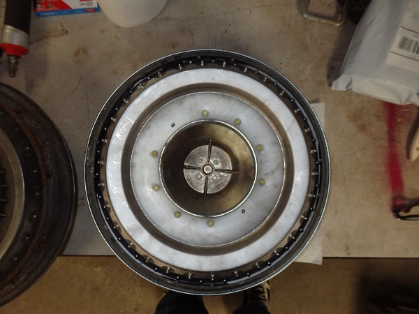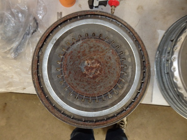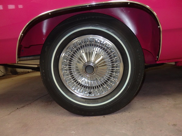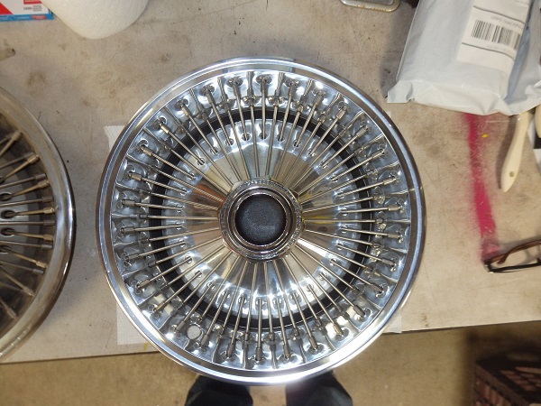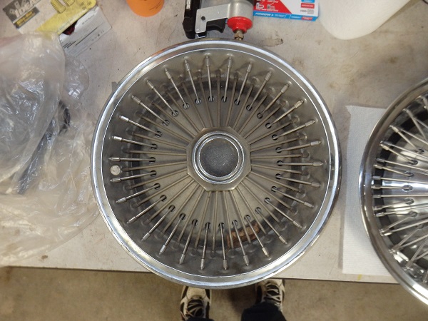 The car originally came from the factory with wire wheel covers. I was able to find an NOS set, but they were slighly different then the original ones. Most of the differenes were on the back side. On the outside you can only tell if you know what you