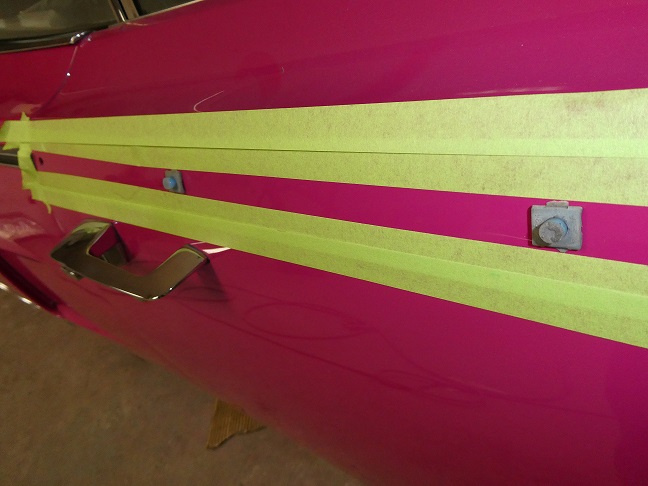 To install the mouldings I first set the blue clips in place without the locking pins, I then masked the perimeter off to protect the paint and tapped the locking pins in place. The mouldings just snap into place using the palm of my hand..